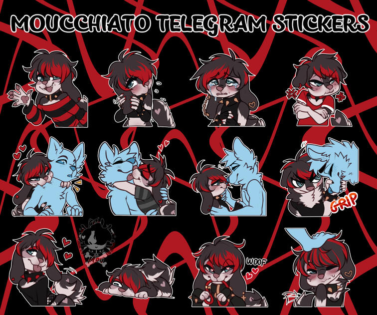 Crediting me ( @ moucchiato ) or giving a link back to one of my socials must be given anytime the art is shown.